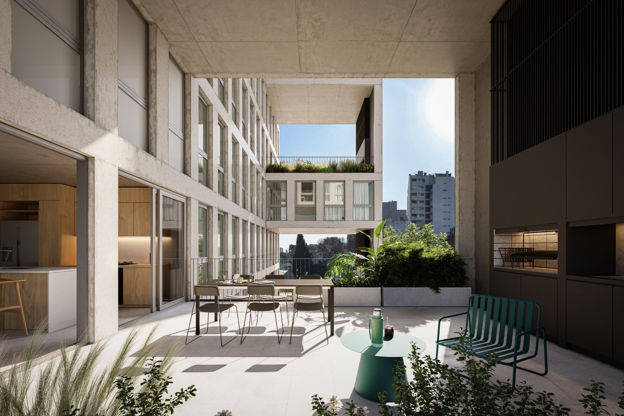 Julián está diseñado para las nuevas formas de habitar en la ciudad, donde el hogar no es solo un refugio, sino un espacio de conexión. Living-comedor con cocina integrada que crean un ambiente central donde la vida cotidiana fluye con naturalidad, uniendo momentos y personas. Estos espacios se extienden hacia terrazas privadas, patios internos y balcones amplios, fomentando la interacción entre el interior y el exterior.
