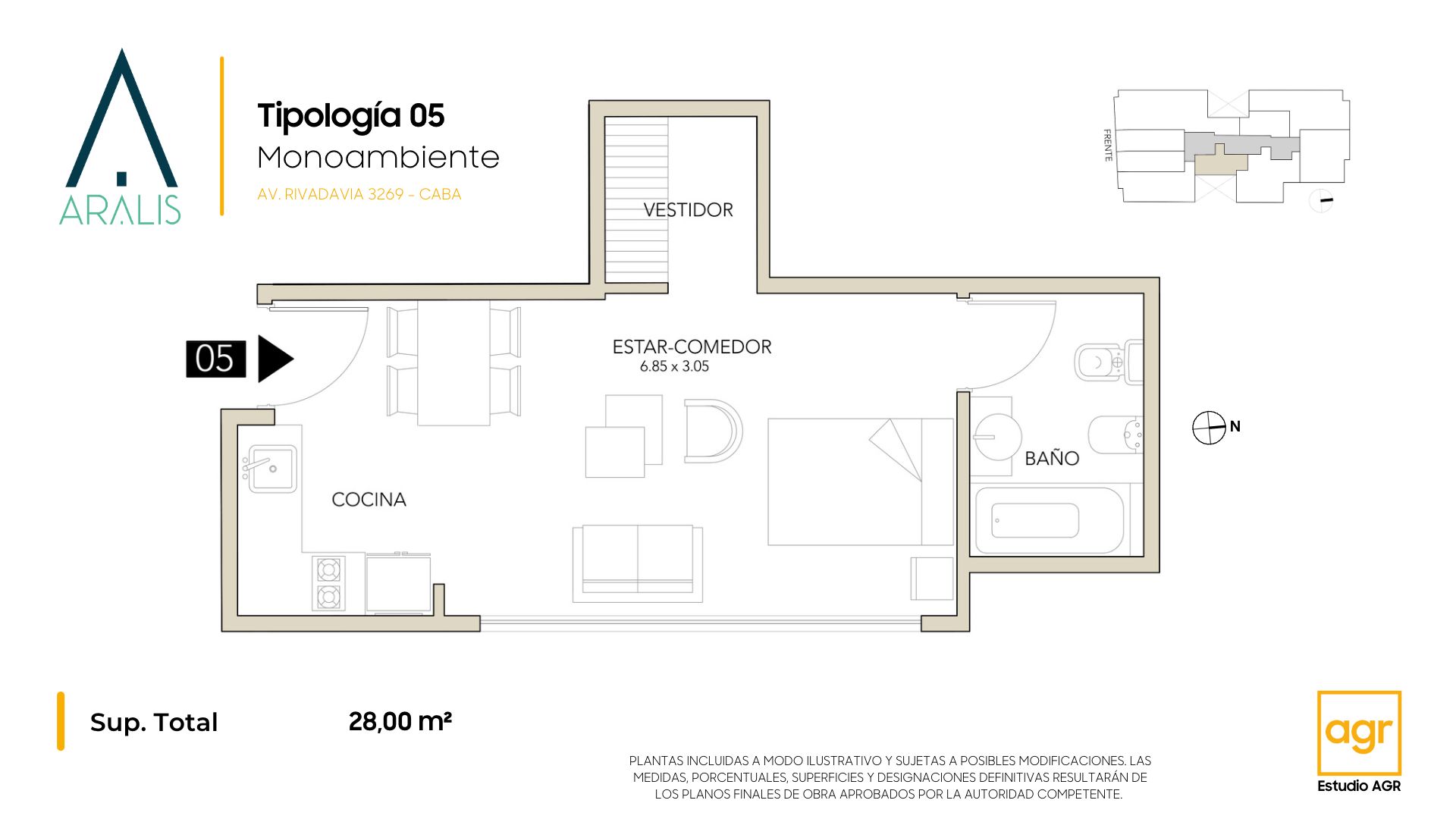 | Monoambiente | Tipología 05 | 28 | Lateral Este | U$S 81.300.- |